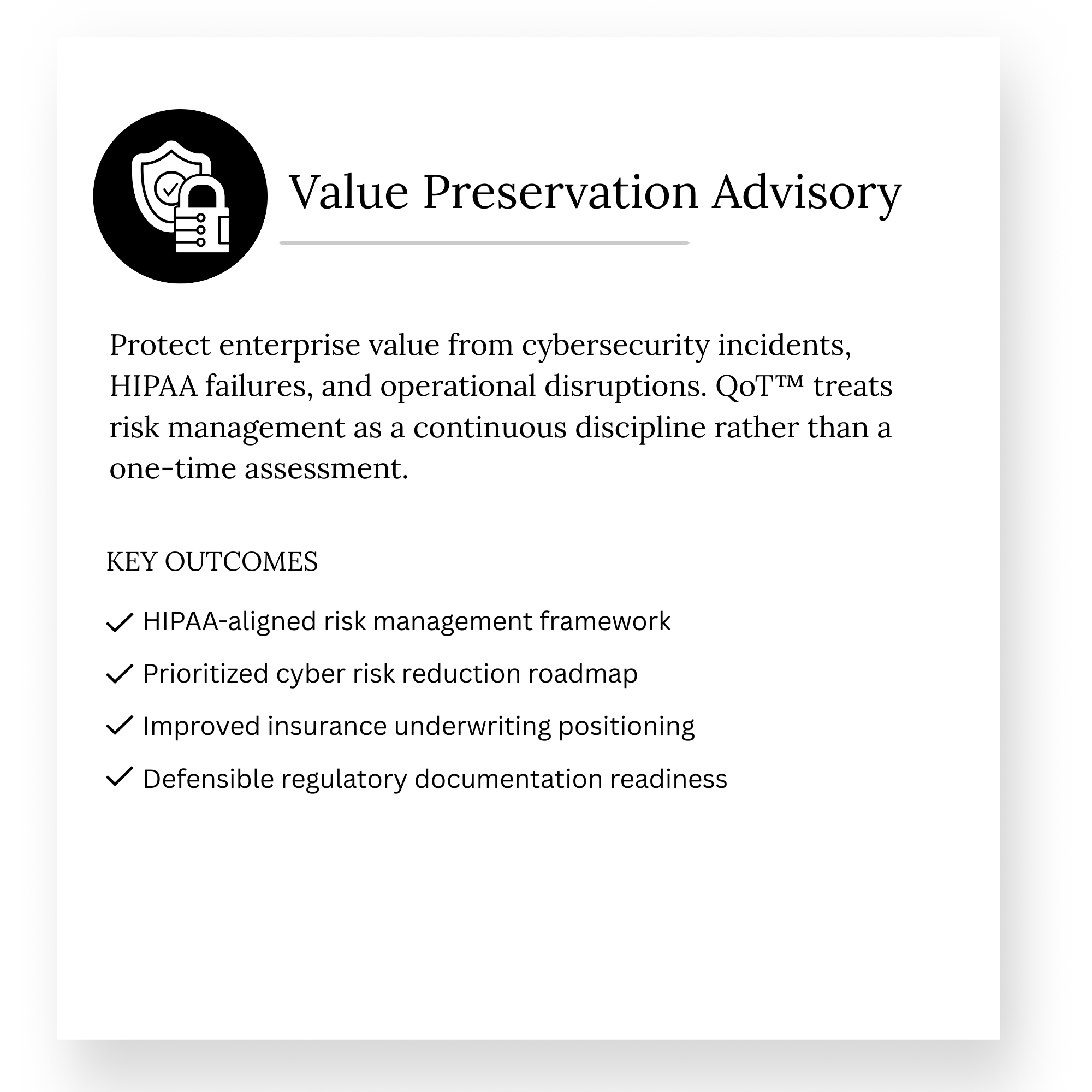 We apply Quality of Tech (QoT™) through a healthcare lens—translating regulatory, clinical, and operational complexity into financial clarity for sponsors across buy, hold, and exit.